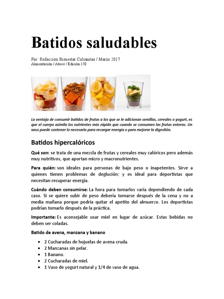 movilizar la fibra que se está consumiendo. Luego de licuar estos batidos no se