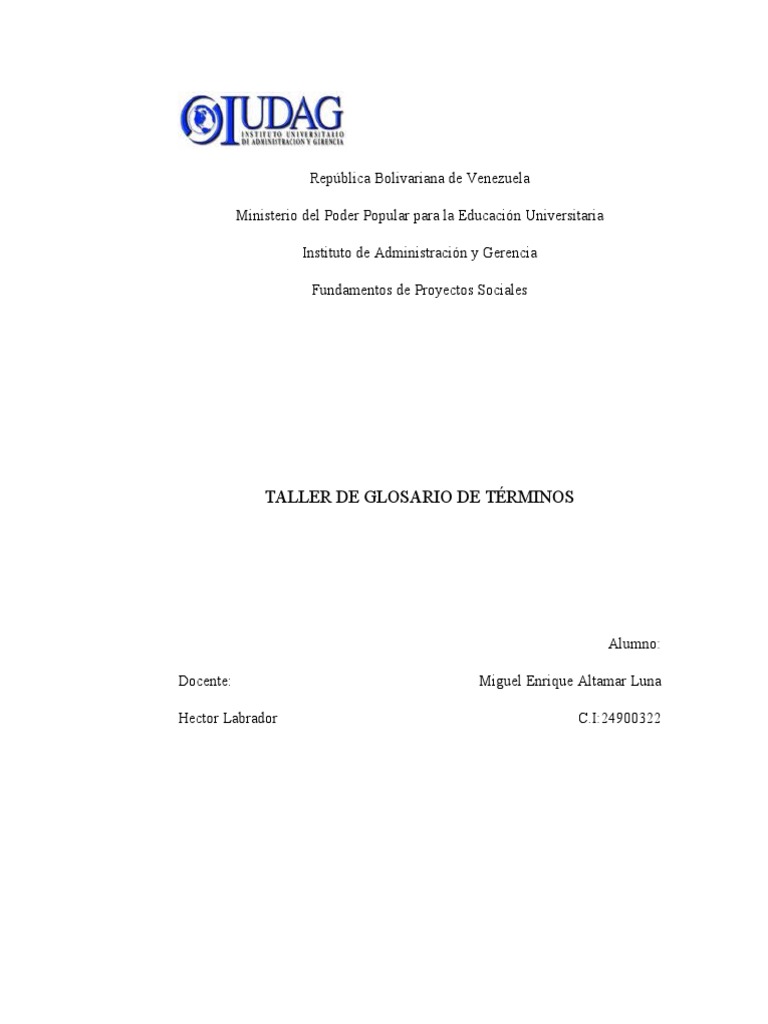 TALLER DE GLOSARIO DE TÉRMINOS