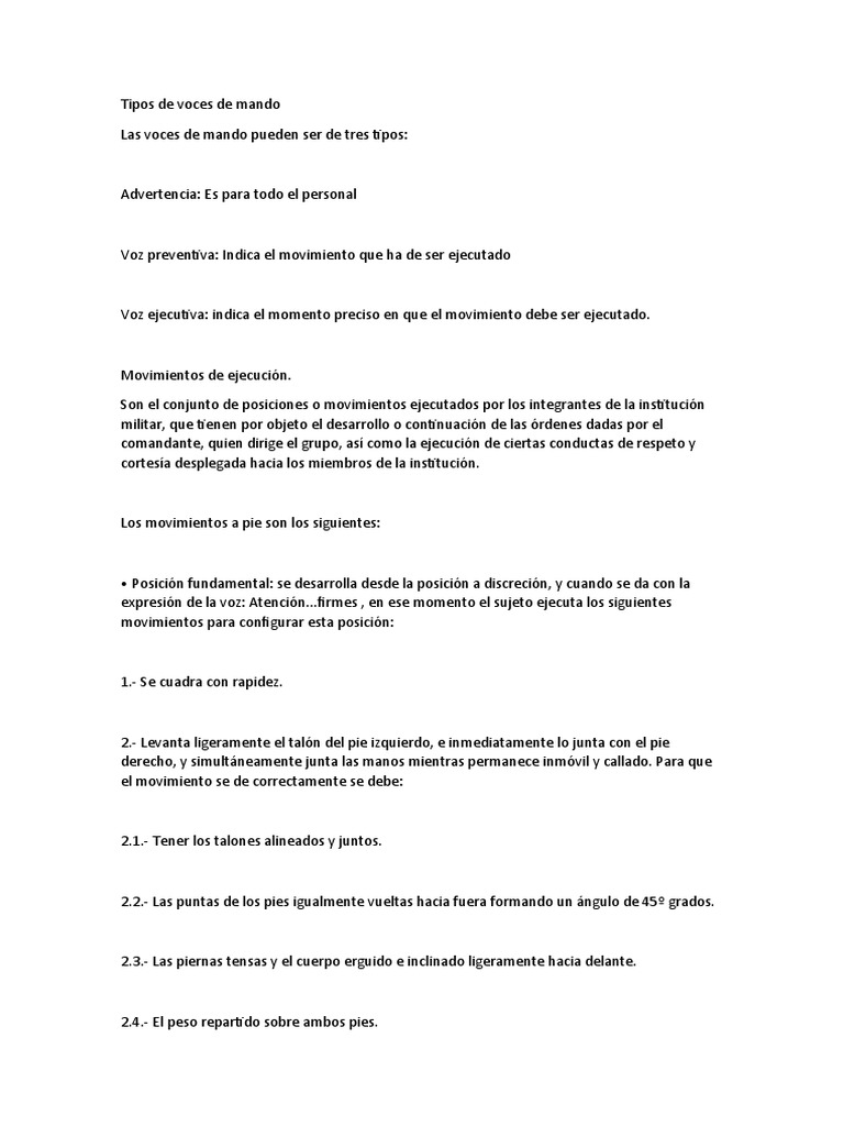 expresión de la voz: Atención...firmes , en ese momento el sujeto ejecuta los siguientes