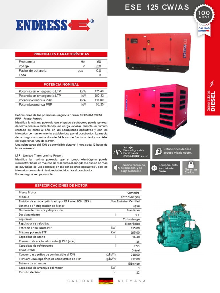 Identifica la máxima potencia que el grupo electrógeno puede generar