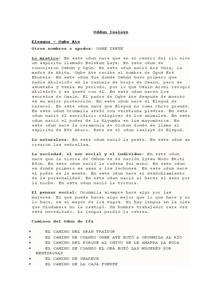 hijo, aunque no esté presente. En este odun nace el okpele.