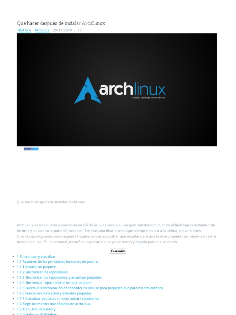 ArchLinux es una buena experiencia en GNU/Linux, te llena de una gran satisfacción cuando al final logras instalarlo sin