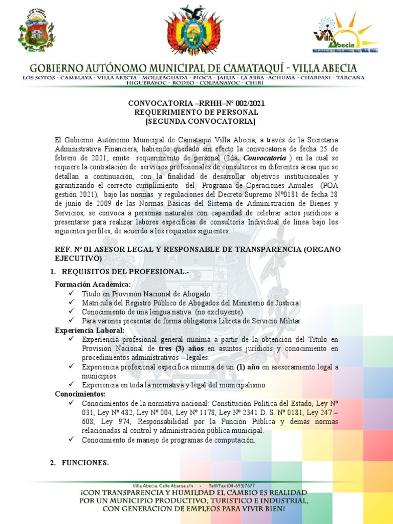 CONVOCATORIA –RRHH–Nº 002/2021