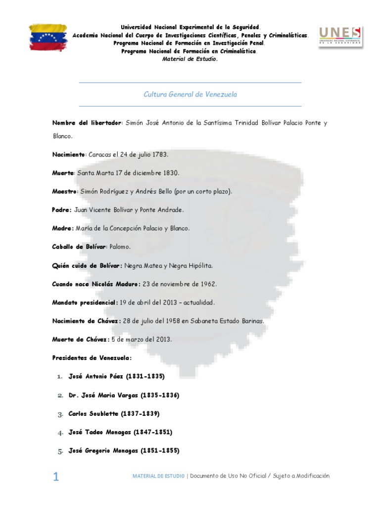 1 MATERIAL DE ESTUDIO | Documento de Uso No Oficial / Sujeto a Modificación
