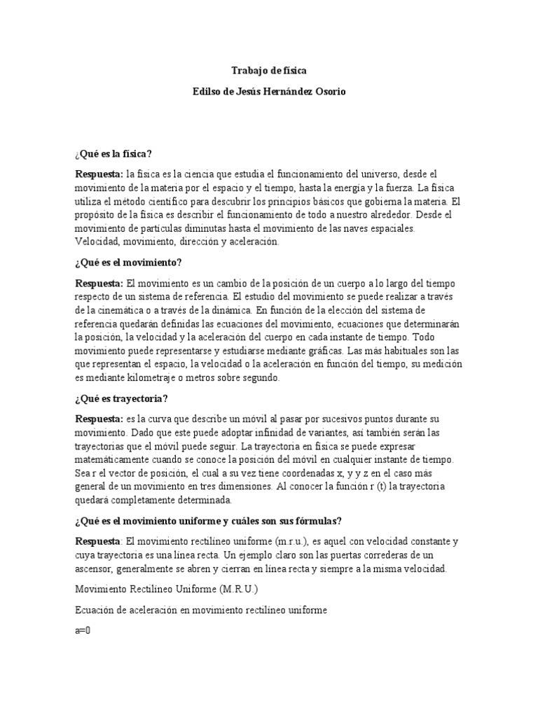 Respuesta: la física es la ciencia que estudia el funcionamiento del universo, desde el
