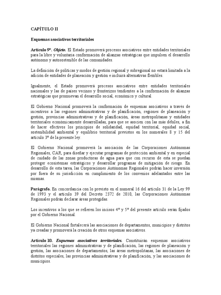 Artículo 9°. Objeto. El Estado promoverá procesos asociativos entre entidades territoriales