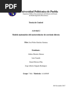 En este trabajo se presenta el modelo matemático de un motor de corriente continua. Se ha