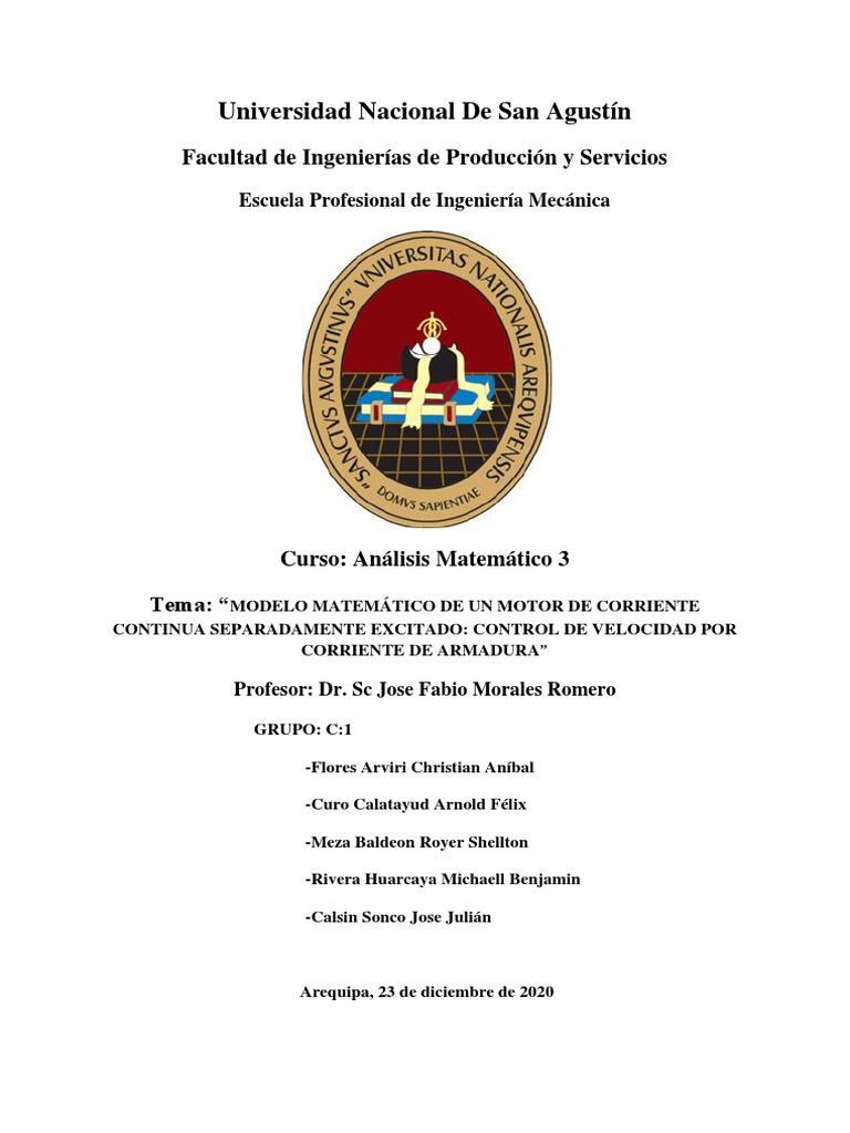 Tema: “MODELO MATEMÁTICO DE UN MOTOR DE CORRIENTE