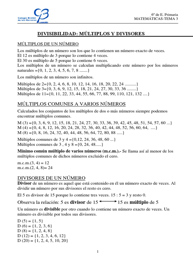 Divisor de un número es aquel que está contenido en él un número exacto de veces. Al