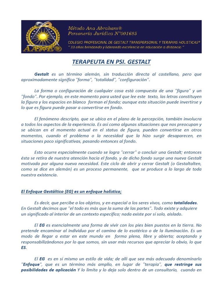 TÍTULO: TERAPEUTA EN PSI. GESTALT