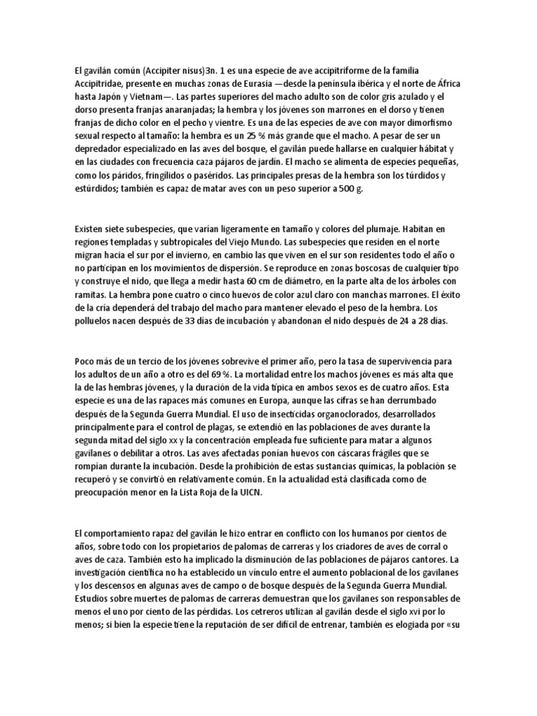 menos el uno por ciento de las pérdidas. Los cetreros utilizan al gavilán desde el siglo xvi por lo