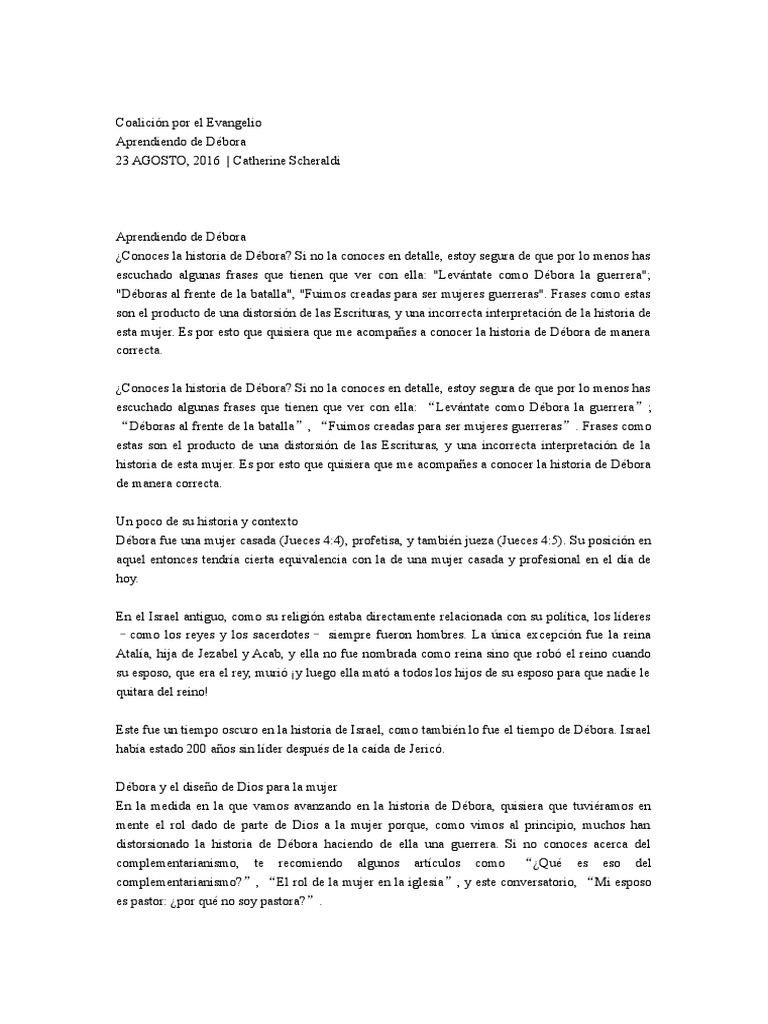En la medida en la que vamos avanzando en la historia de Débora, quisiera que tuviéramos en