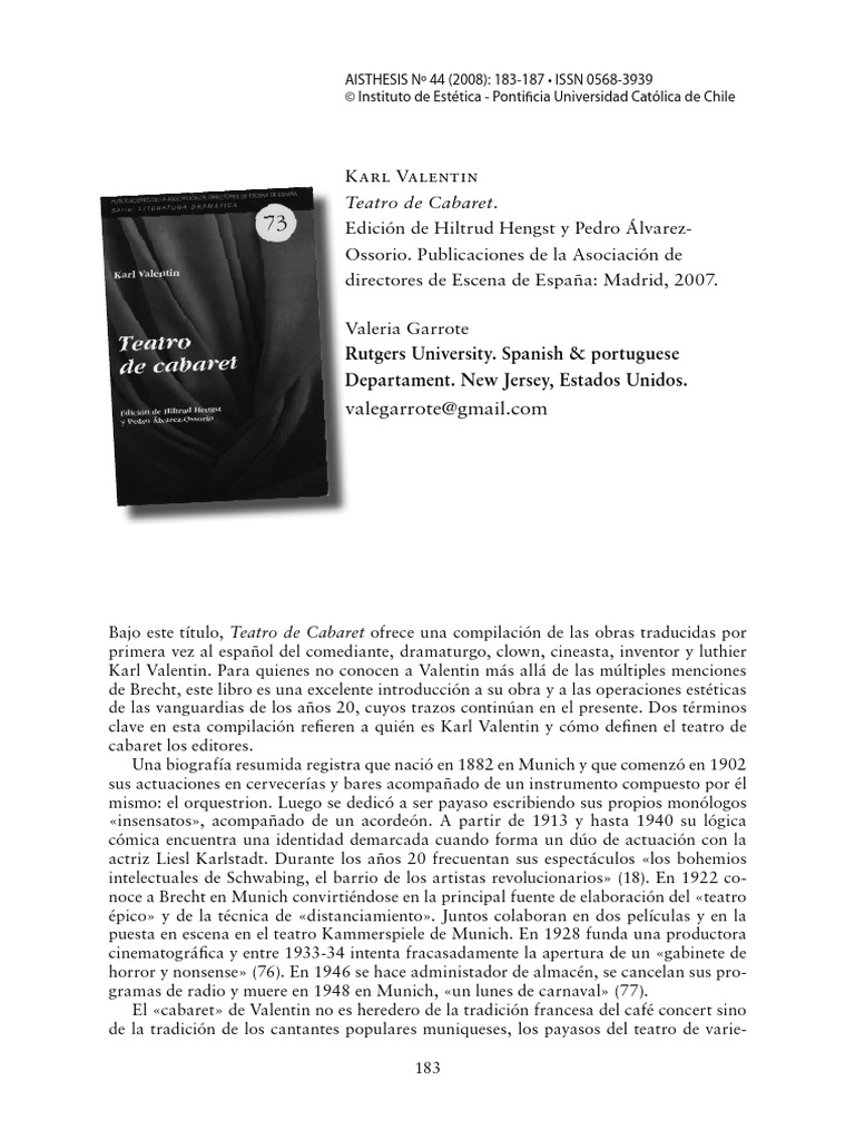 VALERIA GARROTTE • Reseña de Teatro de cabaret de Karl Valentin 187