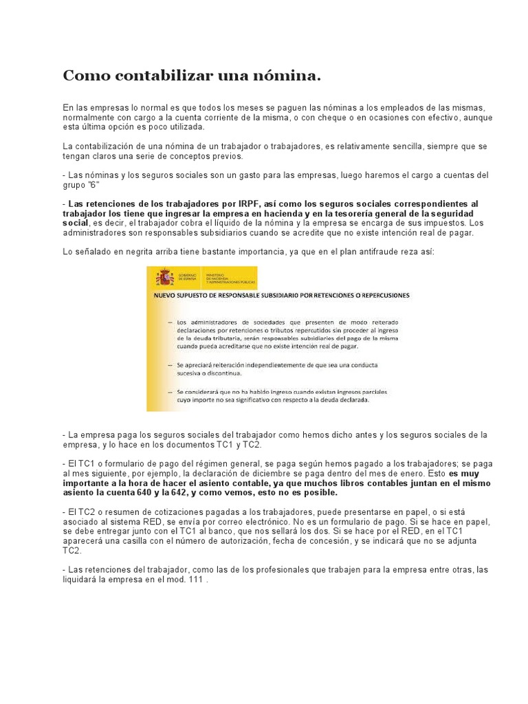Como contabilizar una nómina.