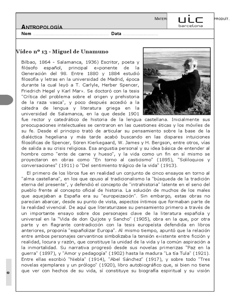 Miguel de Unamuno, responde a las cuestiones siguientes: