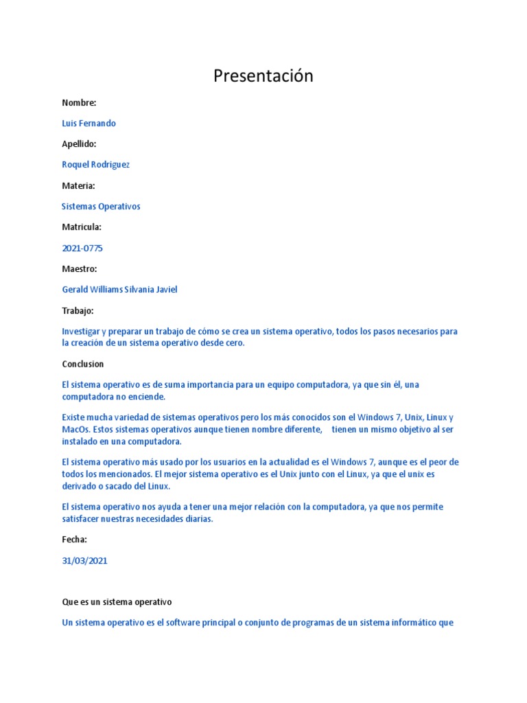 Investigar y preparar un trabajo de cómo se crea un sistema operativo, todos los pasos necesarios para