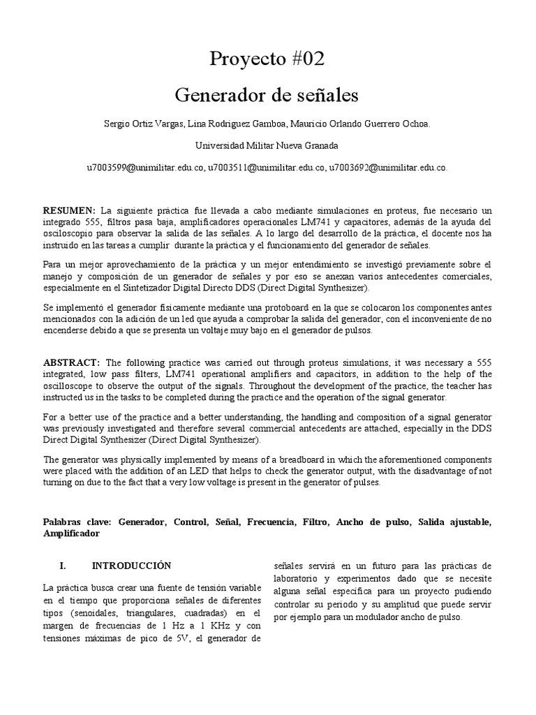 Palabras clave: Generador, Control, Señal, Frecuencia, Filtro, Ancho de pulso, Salida ajustable,