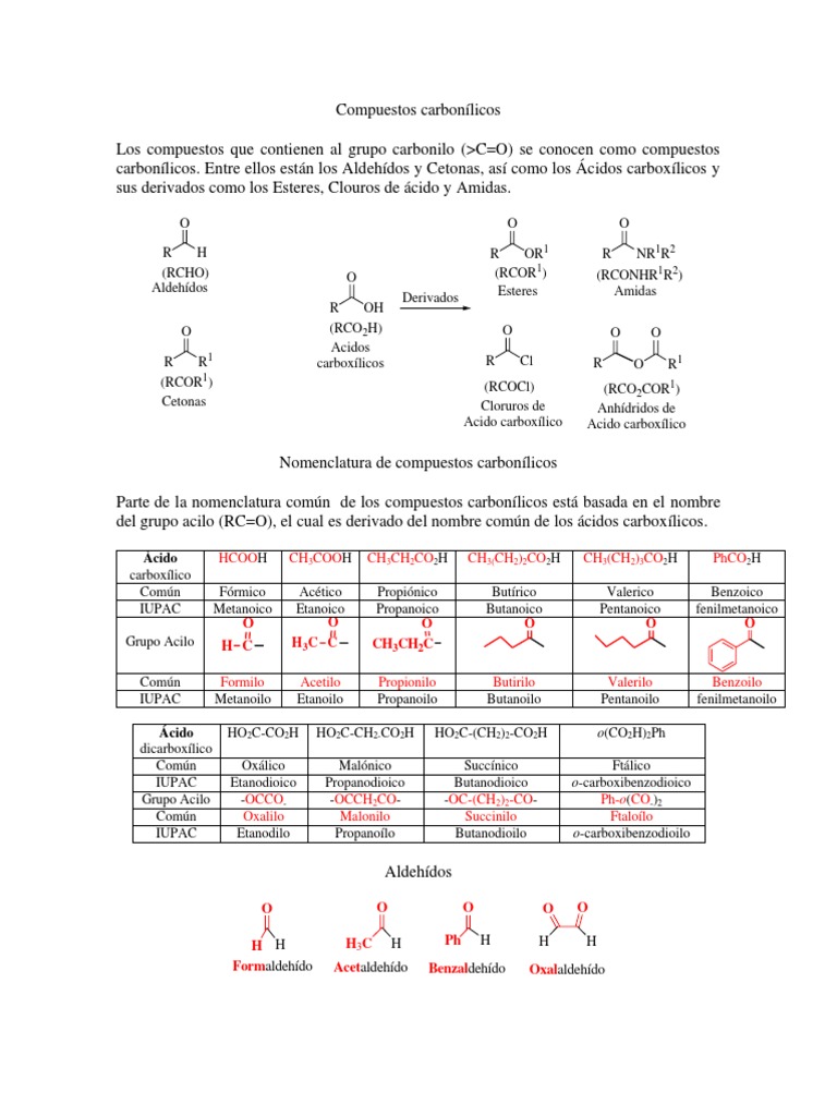 carbonílicos. Entre ellos están los Aldehídos y Cetonas, así como los Ácidos carboxílicos y