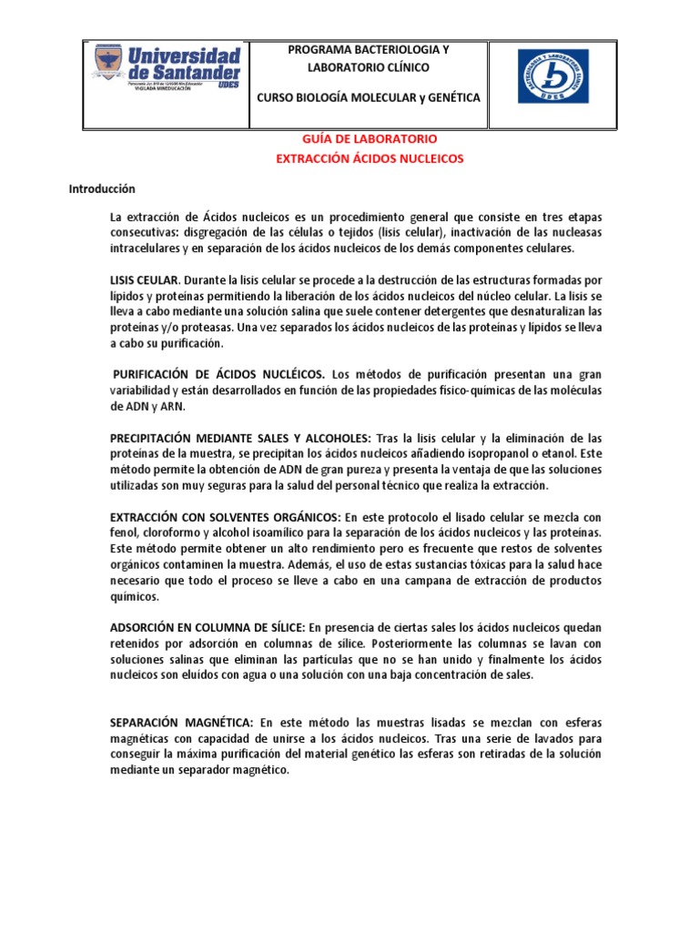 La extracción de Ácidos nucleicos es un procedimiento general que consiste en tres etapas
