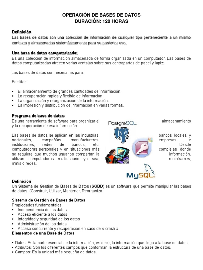 Tipos y Operación de Bases de Datos