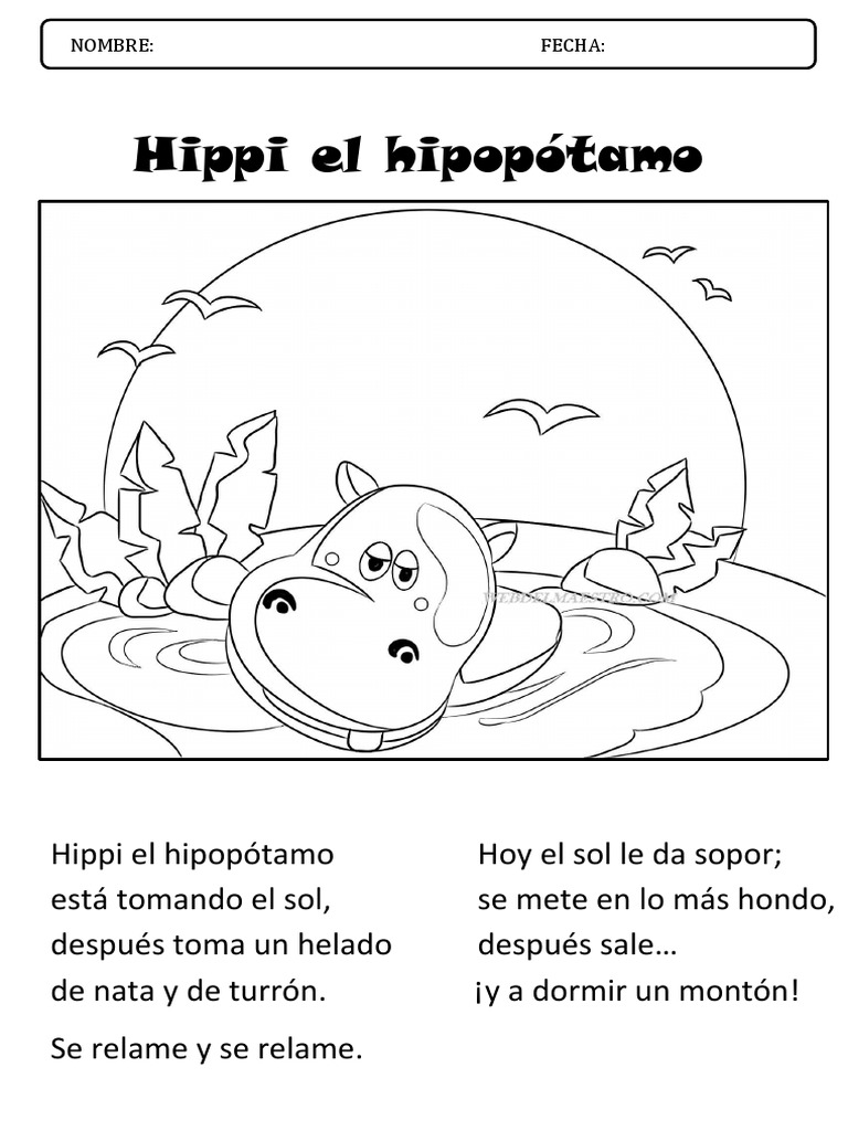 Hippi el hipopótamo Hoy el sol le da sopor;