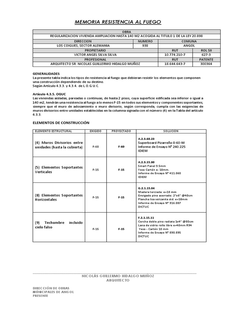 MEMORIA RESISTENCIA AL FUEGO