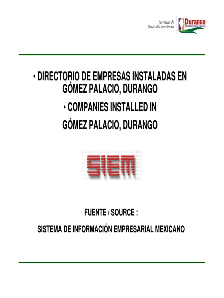 ACEROS SIBE, S.A. DE C.V. [2005] AVENIDA VALLE DEL GUADIANA 543 NTE DURANGO (871)7191111 y 7191110 De 1,001 a 3,000