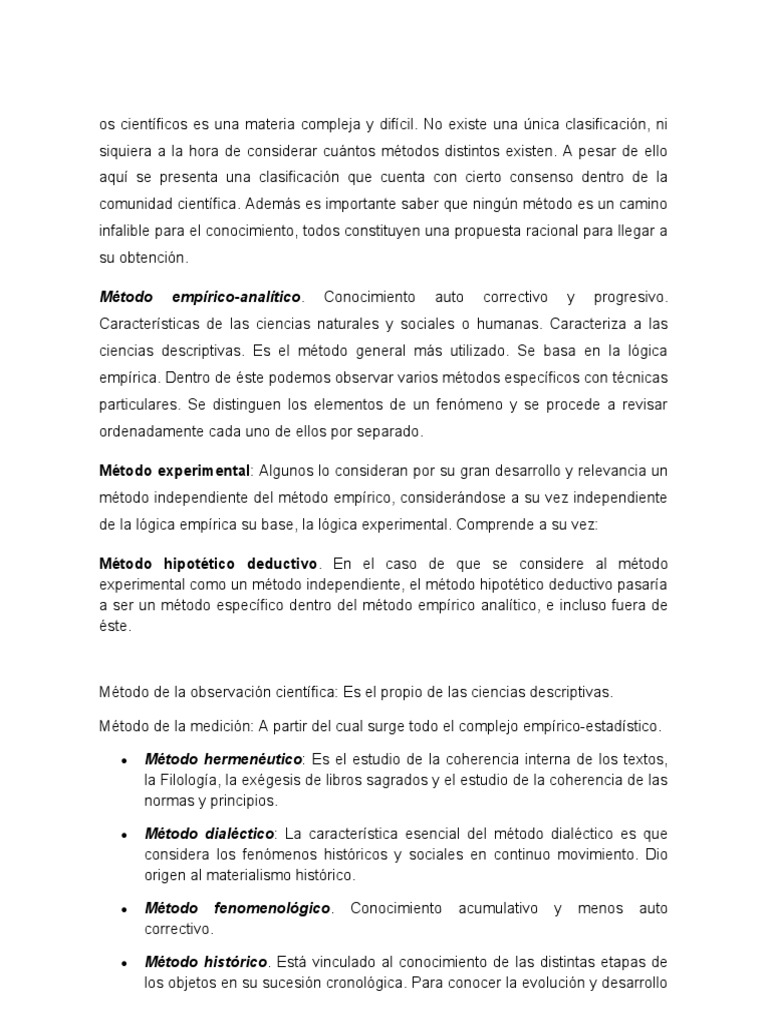 Método empírico-analítico. Conocimiento auto correctivo y progresivo.
