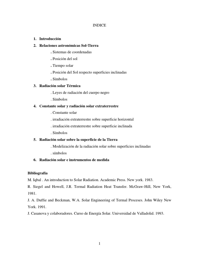 J.A.Duffie y A. Beckman.”Solar energy and termal proceses”. Wiley. New York. 1990.