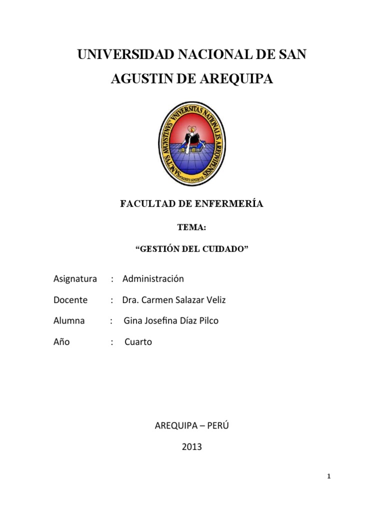 14. CARACTERÍSTICAS DE LA GESTION DE LOS CUIDADOS ENFERMEROS……....21