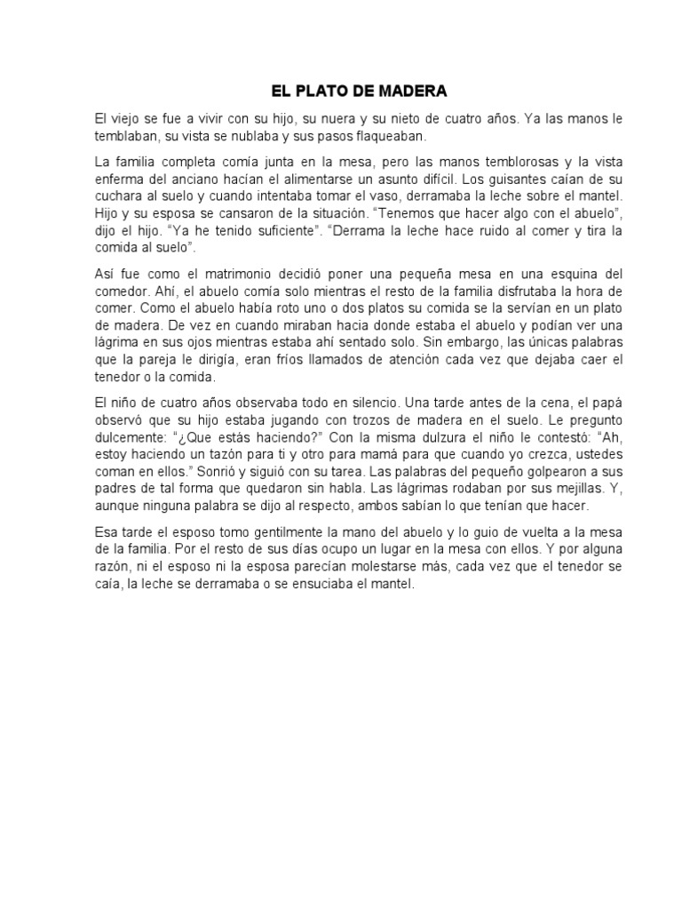 comer. Como el abuelo había roto uno o dos platos su comida se la servían en un plato