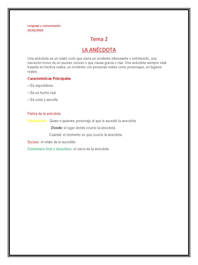 Orientación-. Quien o quienes: personaje al que le sucedió la anecdota