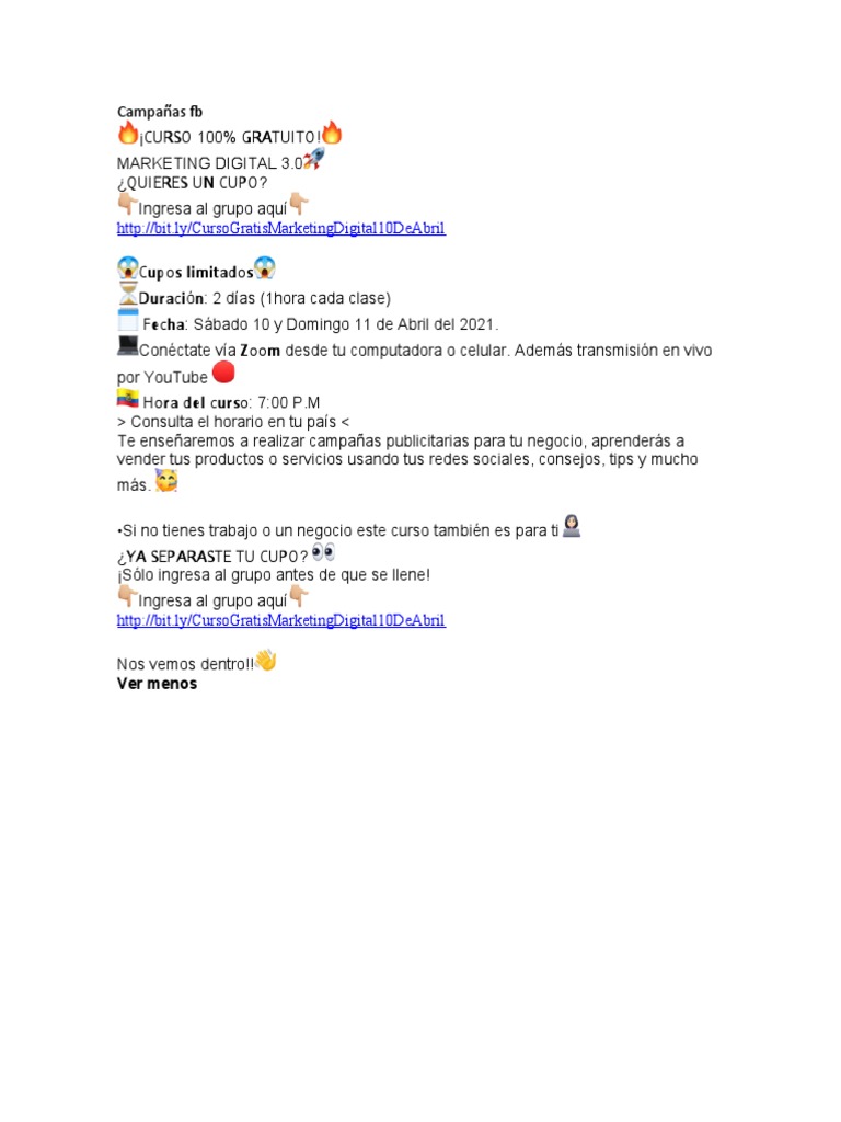 •Si no tienes trabajo o un negocio este curso también es para ti