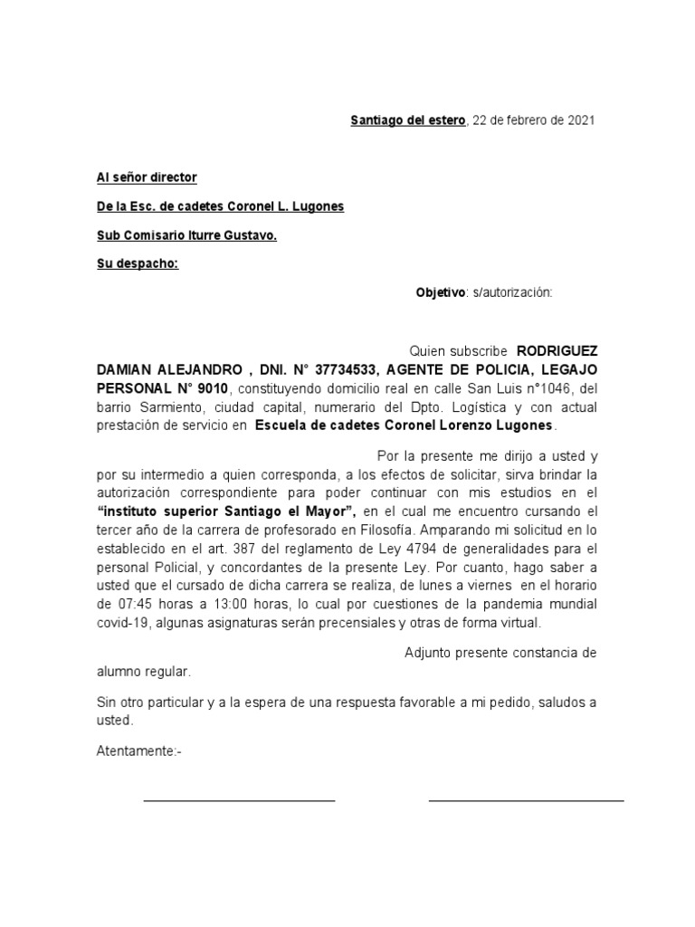 autorización correspondiente para poder continuar con mis estudios en el