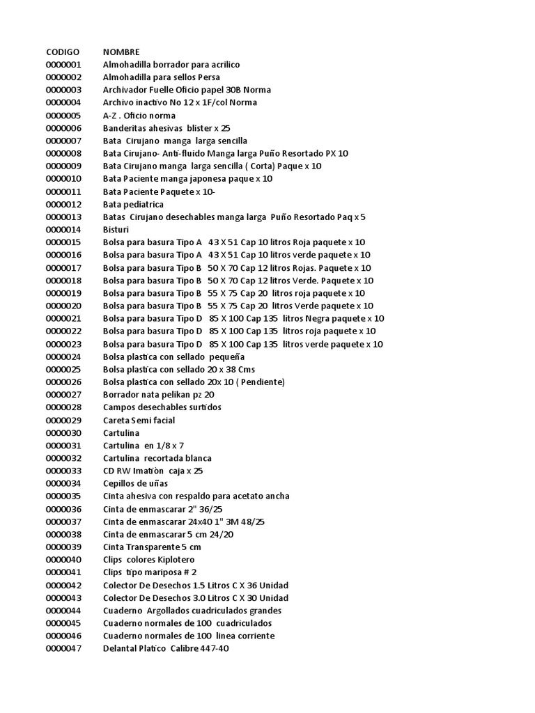 PROMEDIO_PFECHA_ULTIMA_COMP FECHA_ULTIMA_VENTA LIBRE HABILITA TIPO_ELEMEN
