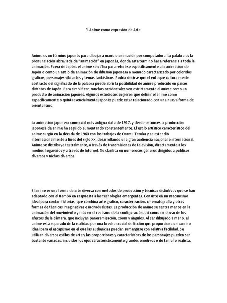 animación, su producción y su proceso. Visualmente, el anime es una forma de arte diversa que