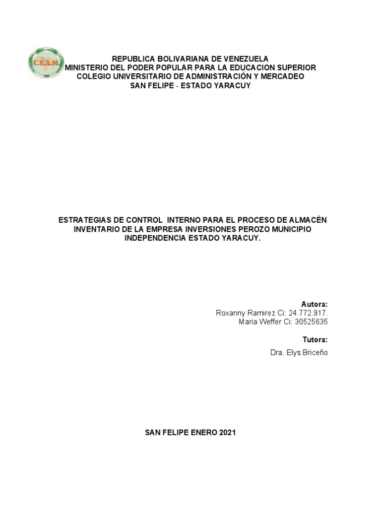 INVENTARIO DE LA EMPRESA INVERSIONES PEROZO MUNICIPIO
