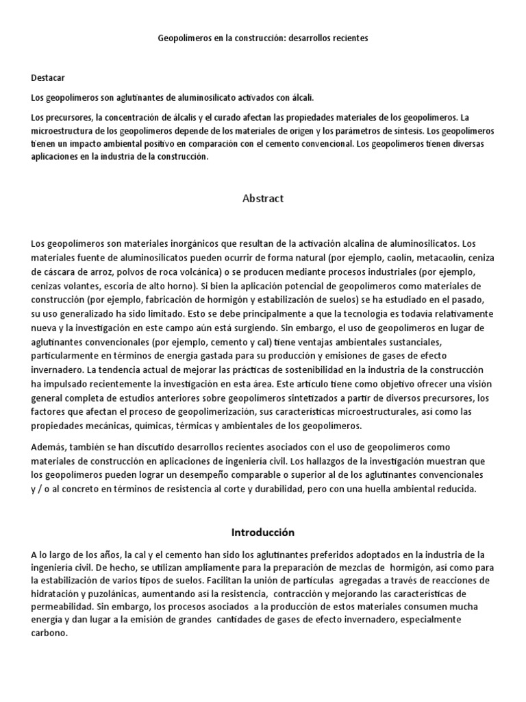 Además, también se han discutido desarrollos recientes asociados con el uso de geopolímeros como