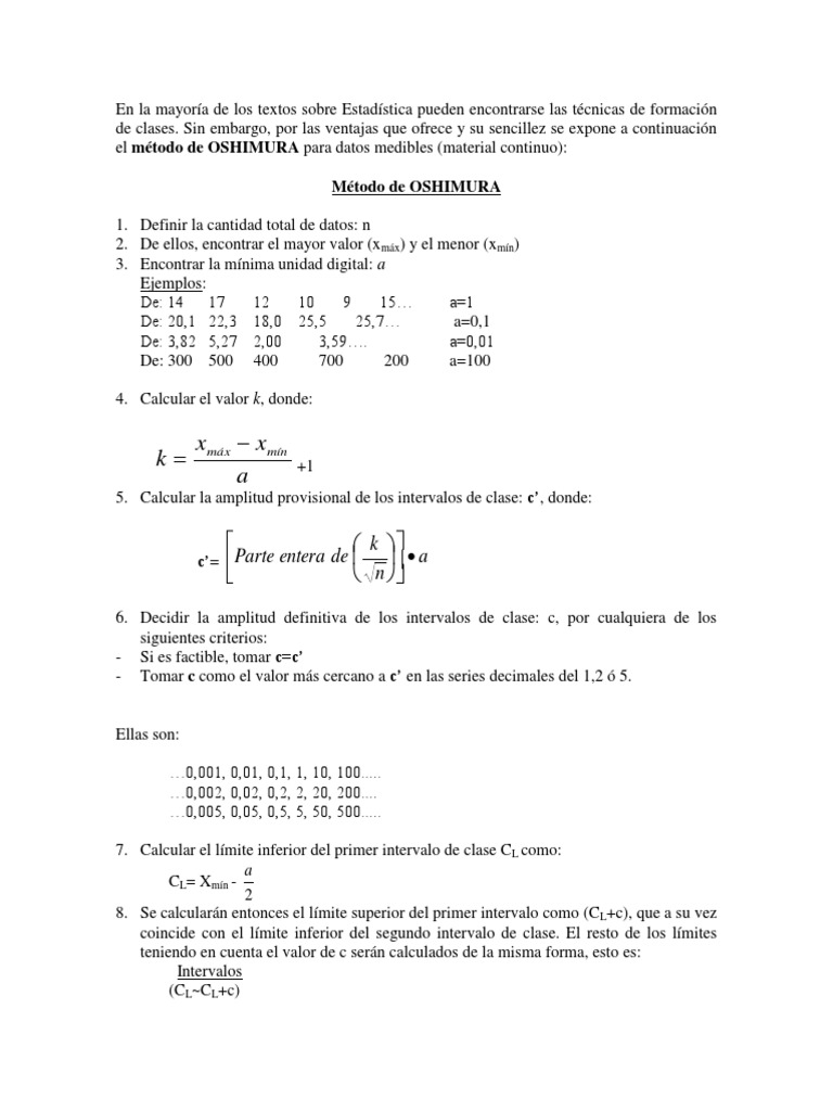 6. Decidir la amplitud definitiva de los intervalos de clase: c, por cualquiera de los