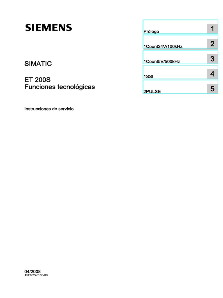 Instrucciones de servicio, 04/2008, A5E00245159-06 3