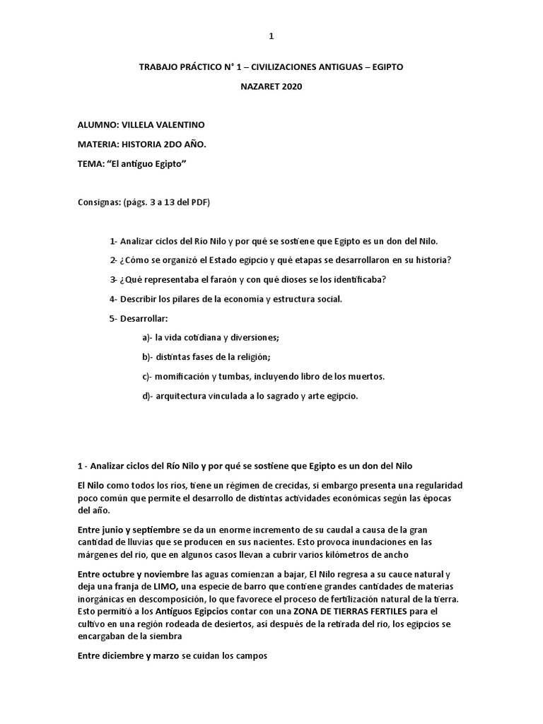 TRABAJO PRÁCTICO N° 1 – CIVILIZACIONES ANTIGUAS – EGIPTO
