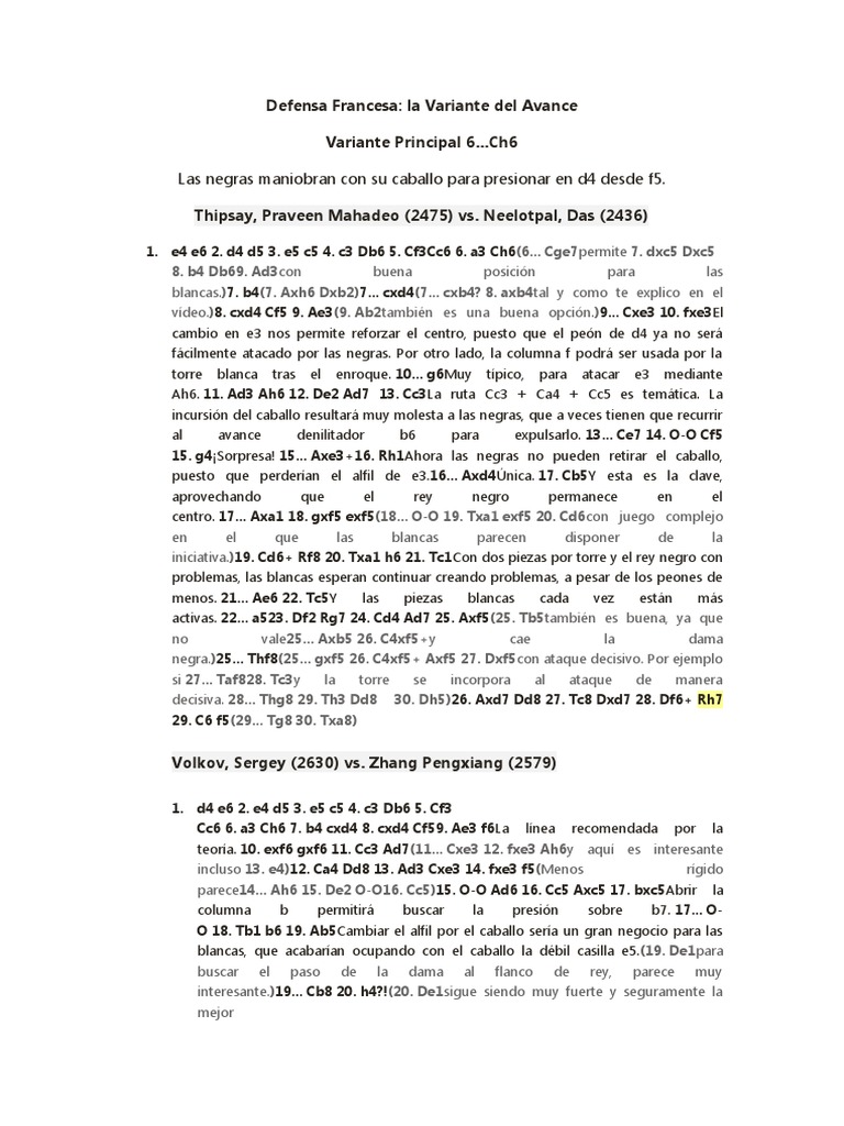 1. e4 e6 2. d4 d5 3. e5 c5 4. c3 Db6 5. Cf3 Cc6 6. a3 c4 7. Cbd2Siempre es bueno