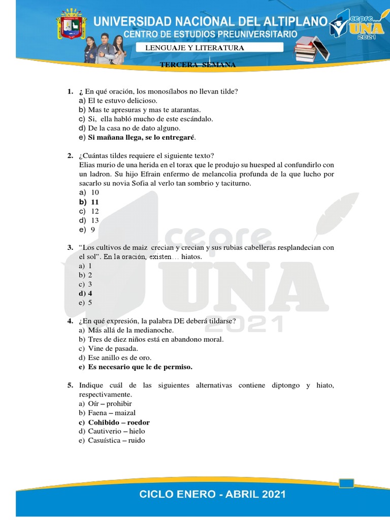 1. ¿ En qué oración, los monosílabos no llevan tilde?