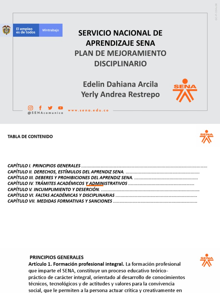 la comunidad SENA deberán respetar los principios y valores institucionales que