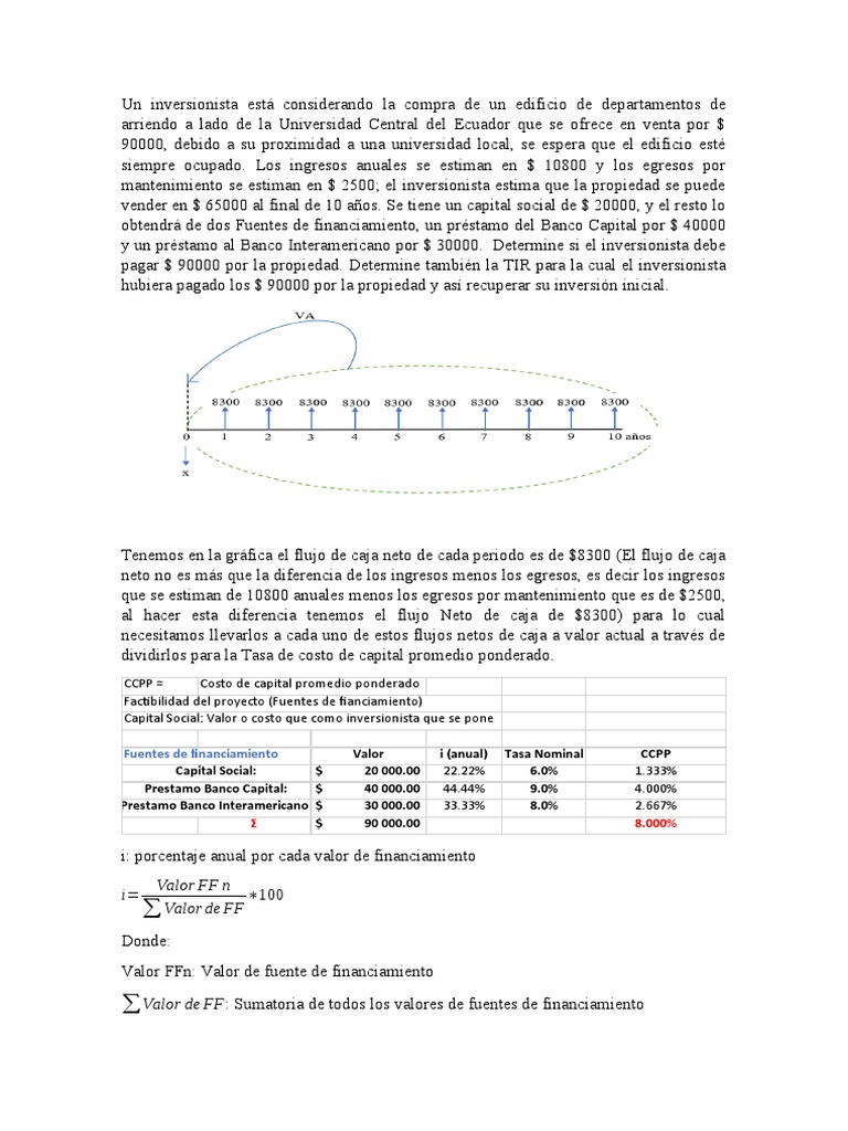 pagar $ 90000 por la propiedad. Determine también la TIR para la cual el inversionista