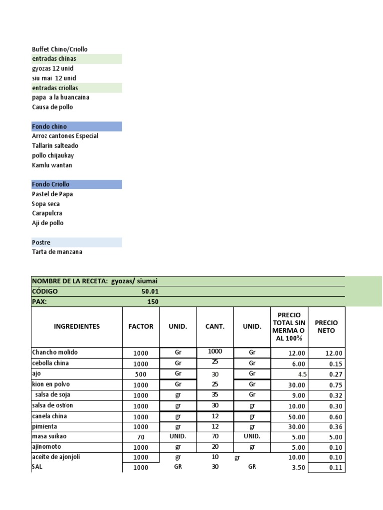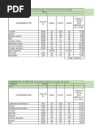 INGREDIENTES FACTOR UNID. CANT. UNID. TOTAL SIN PRECIO