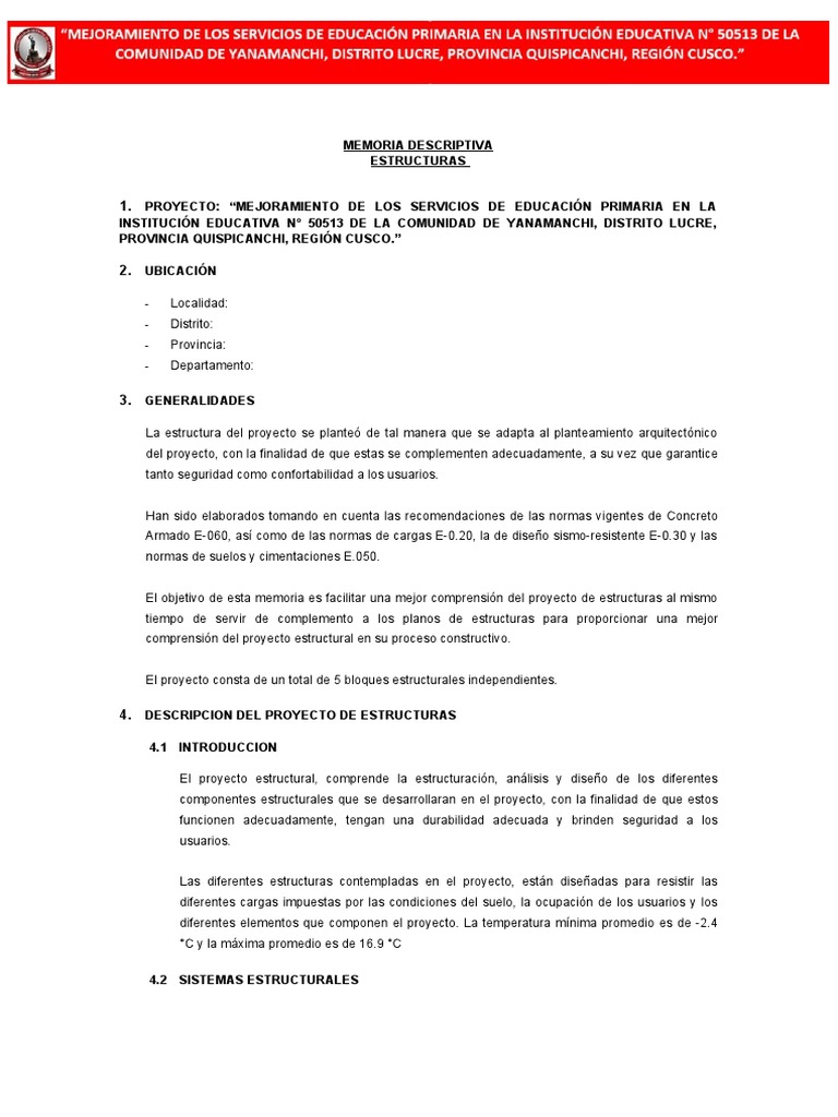 4. DESCRIPCION DEL PROYECTO DE ESTRUCTURAS