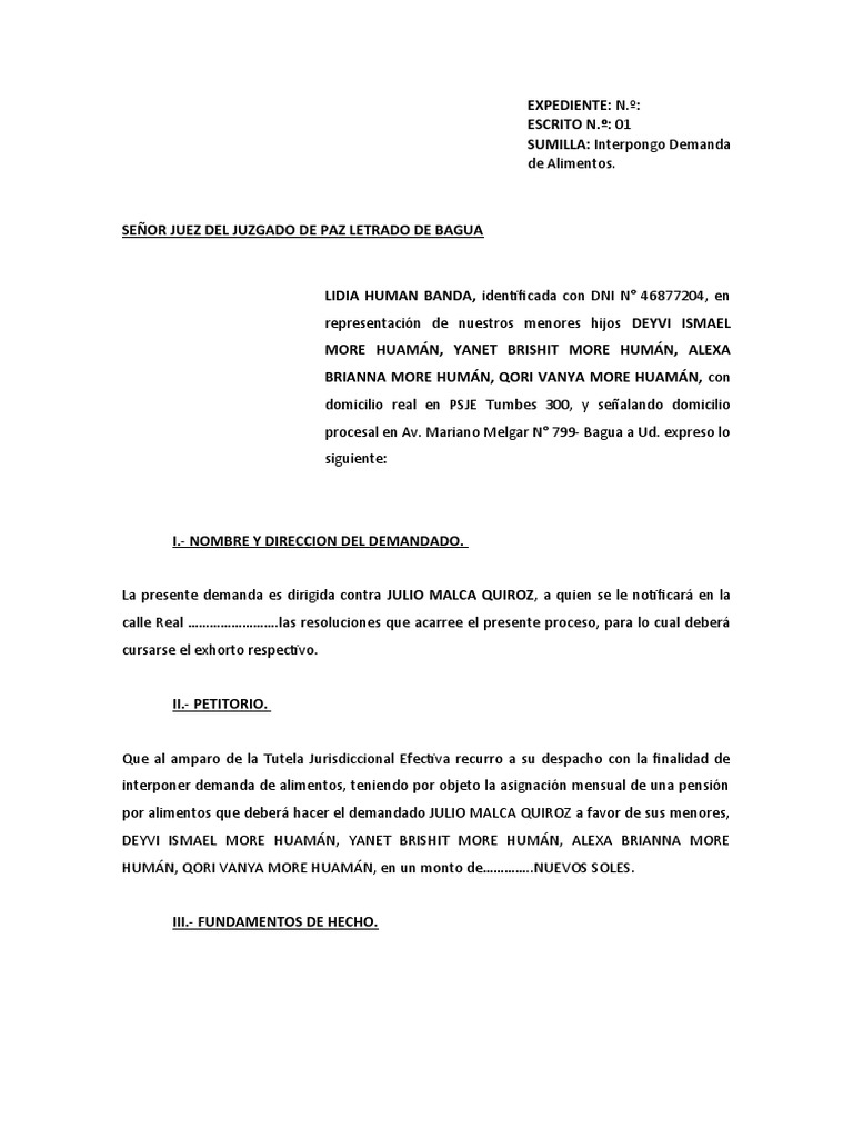 SEÑOR JUEZ DEL JUZGADO DE PAZ LETRADO DE BAGUA