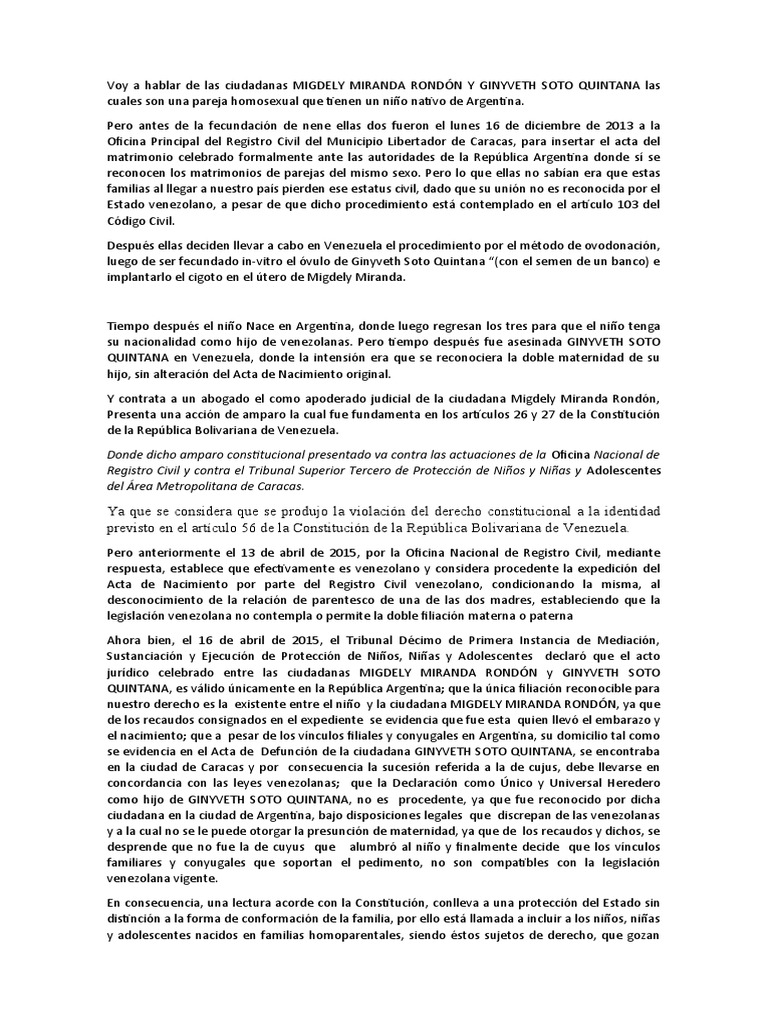 QUINTANA en Venezuela, donde la intensión era que se reconociera la doble maternidad de su