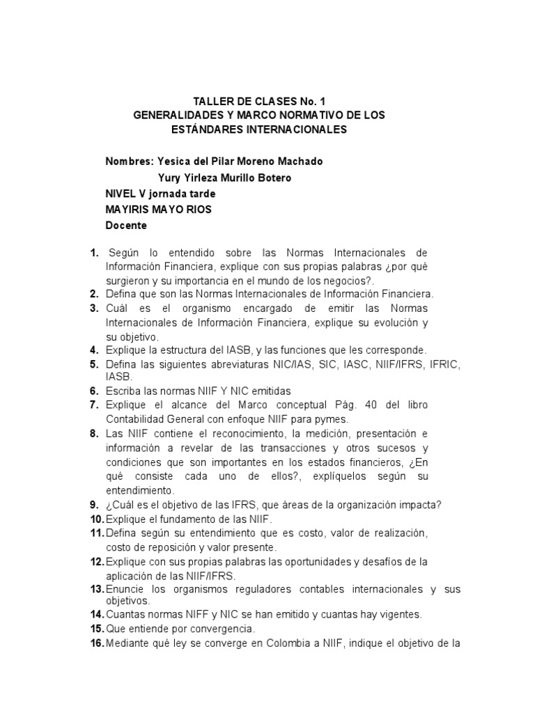 1. Según lo entendido sobre las Normas Internacionales de